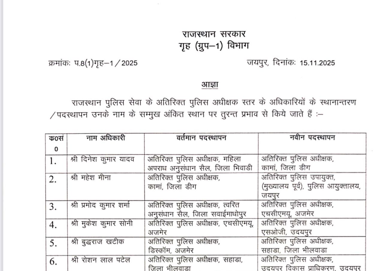 142 अतिरिक्त पुलिस अधीक्षक के स्थानान्तरण / पदस्थापन आदेश* 👇